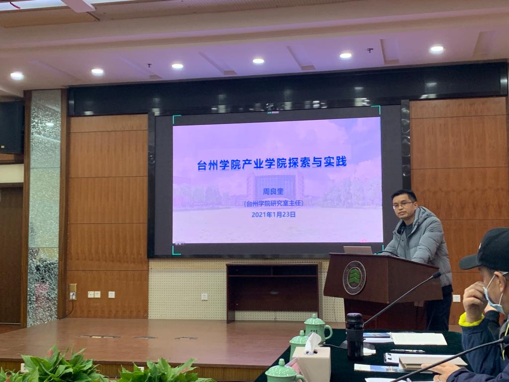 会上,我校研究室主任周良奎应主办方邀请,作了“台州学院产业学院探索与实践”的报告。他在报告中利用三重螺旋、知识生产模式、利益相关者理论、生态系统理论等经典理论简要介绍了产业学院建设的逻辑起点。他认为,当前产业学院建设还面临市场逻辑与社会逻辑、企业“快节奏”与高校“慢生活”、企业特殊需求与学校一般标准、企业剩余价值优先与高校知识生产优先、企业精密敏捷组织与高校松散耦合组织之间的冲突等困境。由于国情的不同,加上各种理论都有自身的前提假设和特定的适用环境,援引一些西方经典理论用于解释产业学院建设并不一定适切。进而他建议,现代产业学院建设应置于共同体视角下进行体制机制方面的系统设计。地方党委政府要发挥积极的推动作用,高校要建立反哺企业的利益补偿机制、形成教师知识转移网络,参与产业学院建设的行业龙头企业应不以营利为主要目的。在理论梳理的基础上,他重点从建设模式的角度介绍了我校近年来在产业学院方面的实践探索。