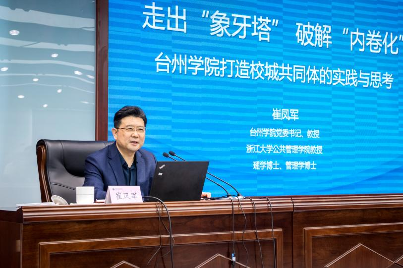 崔凤军以《走出“象牙塔” 破解“内卷化” :台州学院打造校城共同体的实践与思考》为题,从地方高校发展面临的困境切入,分析深层原因,提出务实对策,并且重点介绍了我校近几年的实践探索与成效。