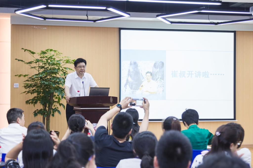 崔凤军从热播剧《都挺好》主要角色的家庭关系及成长经历谈起,结合孩子对于国家、社会和家庭的重要性,及家长及教师的重要定位,通过丰富的案例分析,为听众详细解读应当把握的亲子关系三个阶段、幼年不安全感是成年心理疾病的重要来源、亲子关系应随孩子年龄增长逐渐转为平等关系、把孩子当人看、感恩孩子等七个基本原理。讲座语言幽默,生动活泼,实用性强,引来听众阵阵掌声。